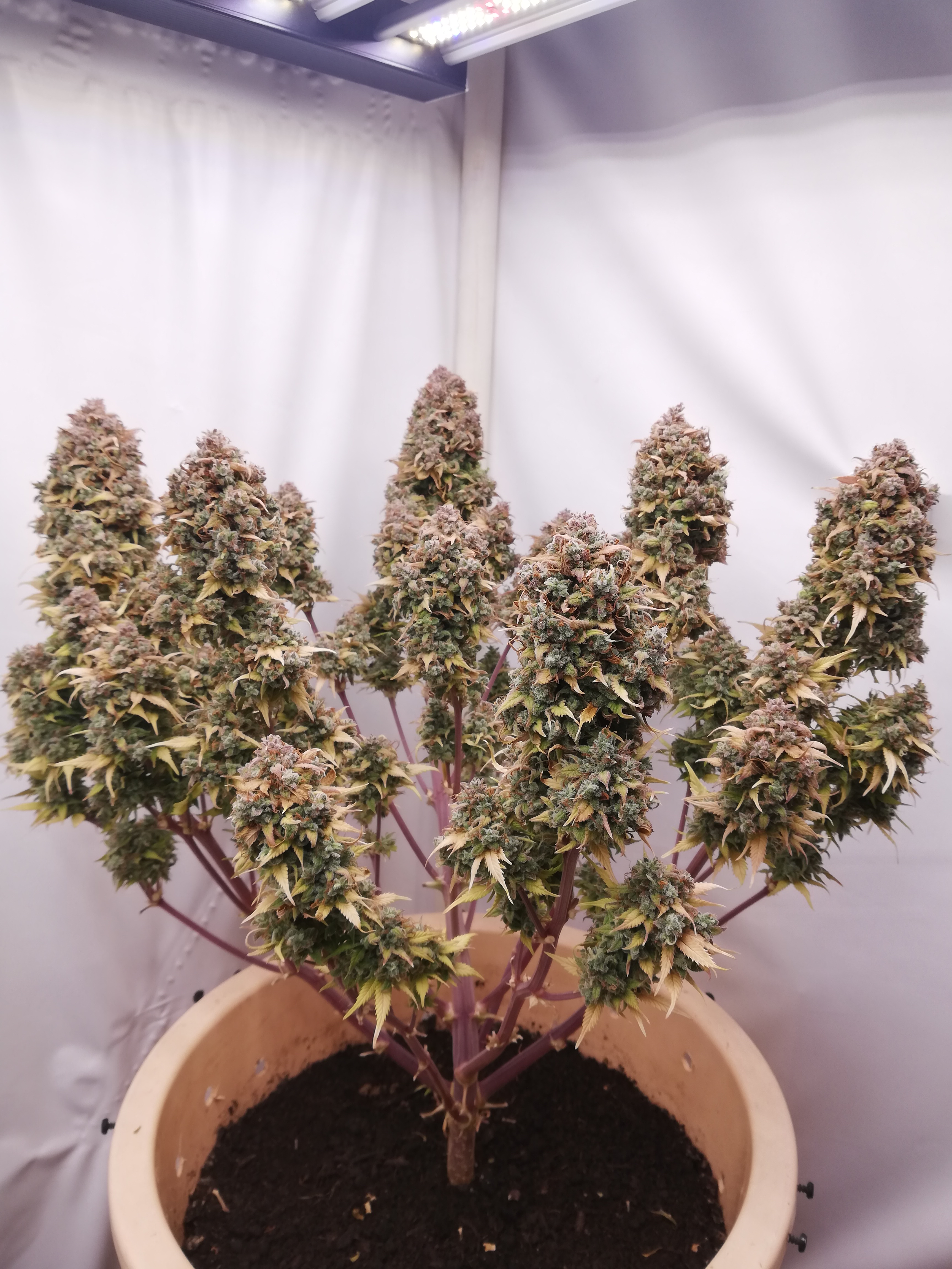 Blue Hawaiian В самом начале поймала стоп на 2 недели ,после всё наверстала. Очень ветвистый сорт , шишки не большие но их много !